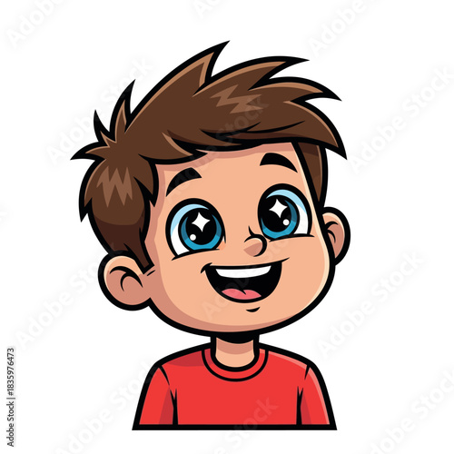 Obraz premium Cartoon Boy with Sparkling Eyes and a Cheerful Smile.