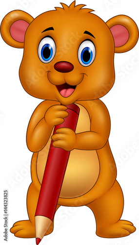 Fototapeta premium Cartoon brown bear cartoon holding red pencil