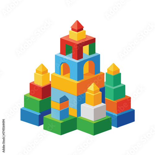 © Masum bellah, Fototapeta premium Cartoon Building Blocks Isolated on White Background