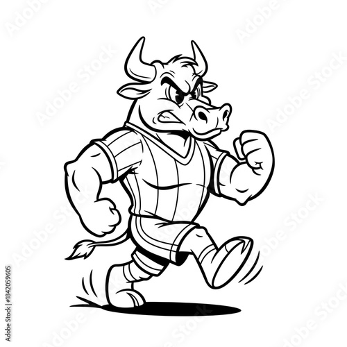 Fototapeta premium Cartoon Bull Mascot Running Pose for Sports Theme.