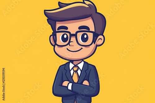 © Imagentive, Obraz premium Cartoon Business Manager in Suit with Glasses