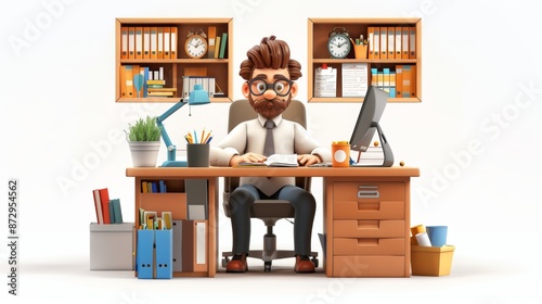Fototapeta premium Cartoon Businessman Working at His Desk