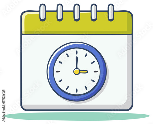 © Юлія Кучер, Obraz premium Cartoon Calendar with a Clock Face Reminding Deadlines or Appointments for Time Management