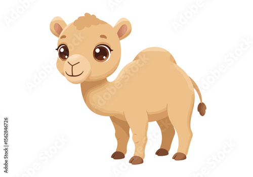 © Chico Store, Naklejka premium Cartoon camel with big eyes and single hump standing on a white background
