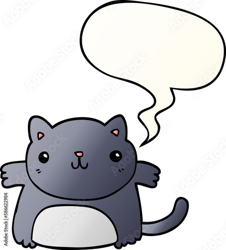 Obraz premium cartoon cat and speech bubble in smooth gradient style
