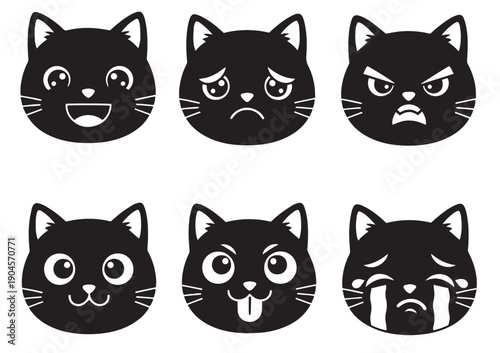 Fototapeta premium Cartoon Cat Faces with Emotional Reactions