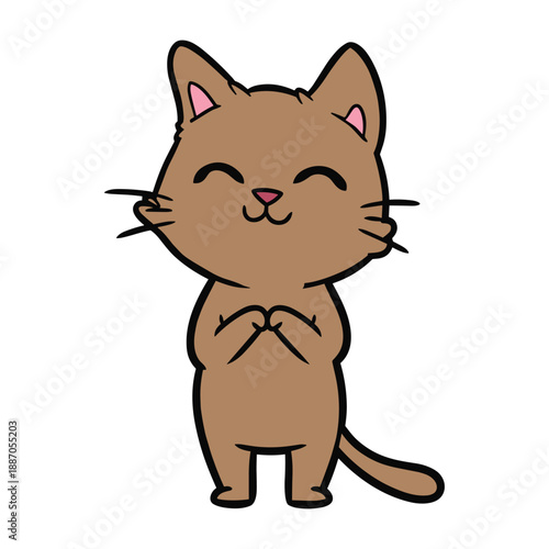 Obraz premium Cartoon cat meditating with eyes closed and hands together
