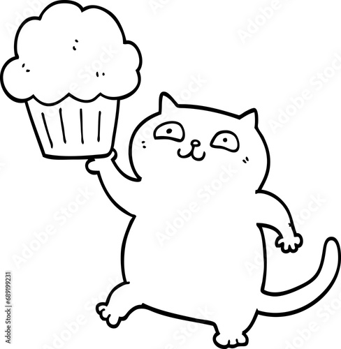 © lineartestpilot, Obraz premium cartoon cat with cupcake