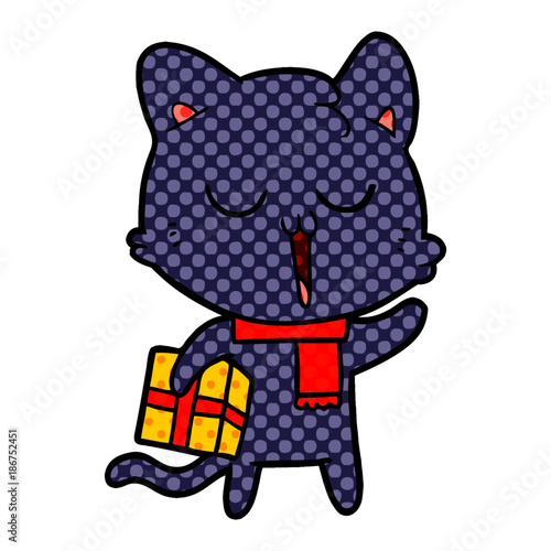Obraz premium cartoon cat with gift