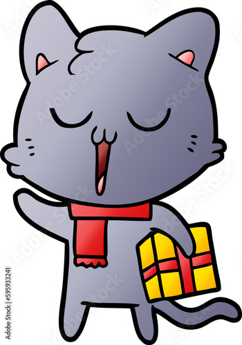 Obraz premium cartoon cat with gift