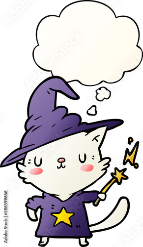 © lineartestpilot, Obraz premium cartoon cat wizard and thought bubble in smooth gradient style