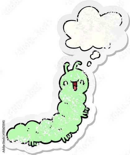 Fototapeta premium cartoon caterpillar and thought bubble as a distressed worn sticker