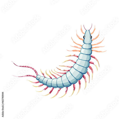 © Kril, Obraz premium Cartoon centipede vector illustration on black background. A cute segmented bug crawling.