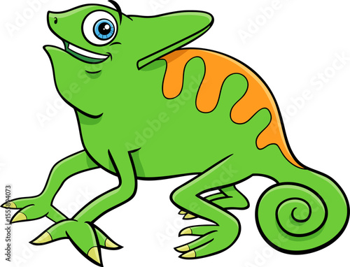 © Igor Zakowski, Naklejka premium cartoon chameleon reptile animal character waving