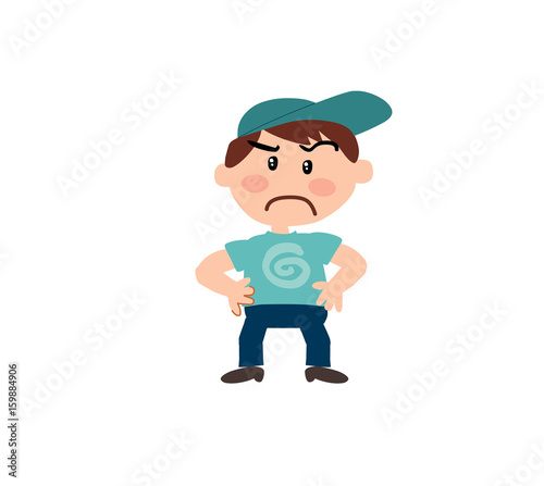 Fototapeta premium Cartoon character boy serious; isolated vector illustration.