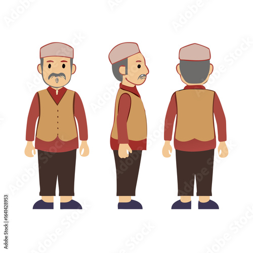 Naklejka premium Cartoon Character Design Of An Elderly Man With A Differents View Angles