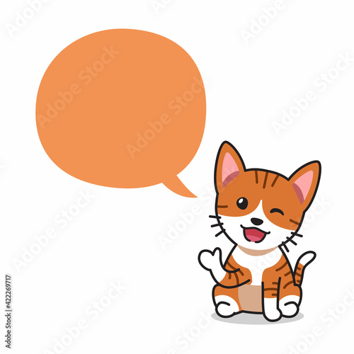Obraz premium Cartoon character happy tabby cat with speech bubble for design.