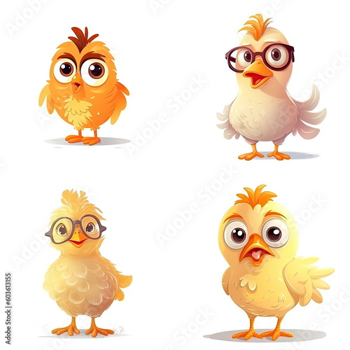 Fototapeta premium Cartoon character of chicken on white background