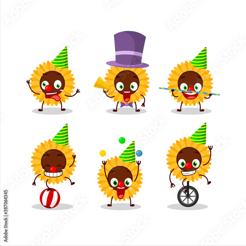 © kongvector, Obraz premium Cartoon character of sunflower with various circus shows