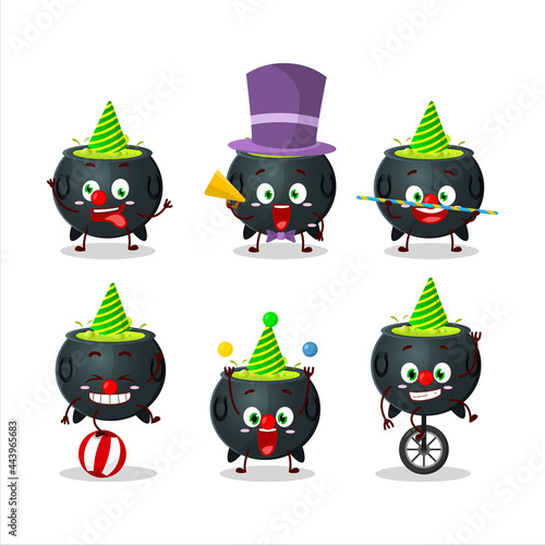 Obraz premium Cartoon character of witch cauldron with various circus shows