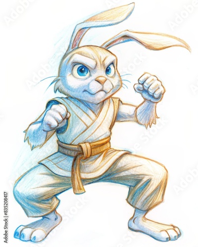 © Владимир Сергеев, Fototapeta premium cartoon character rabbit is a martial artist
