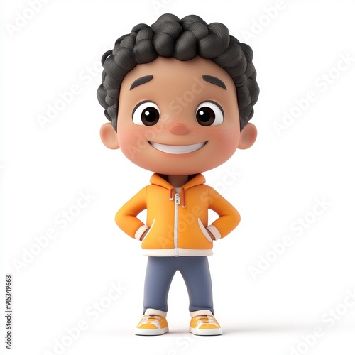 Obraz premium Cartoon character standing confidently in a vibrant orange jacket with a cheerful expression