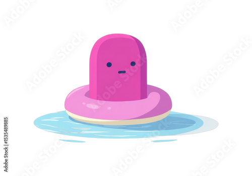 Fototapeta premium Cartoon character with pink inflatable ring floating on water