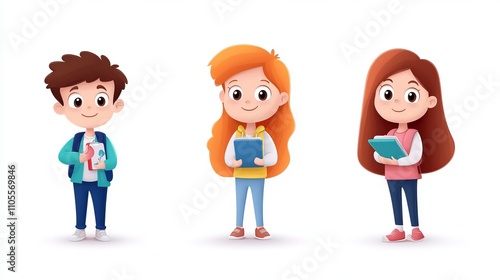 Fototapeta premium Cartoon Characters Engaged in Activities with Bright Expressions