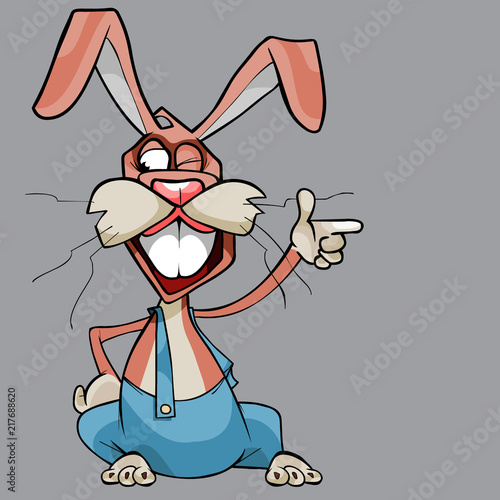© westamult, Obraz premium cartoon cheerful hare shows with a finger