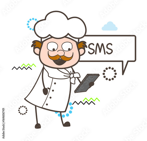 Obraz premium Cartoon Chef Reading Sms Vector Illustration