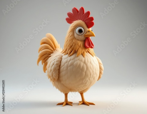 © GL, Fototapeta premium Cartoon Chicken Illustration Standing on White Background with Detailed Texture