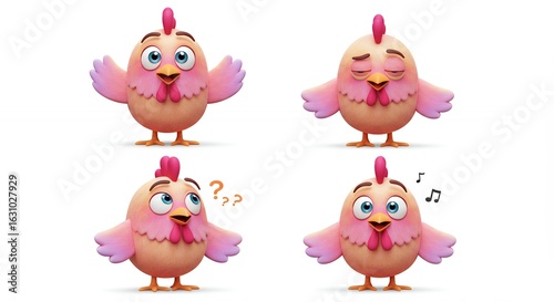 © Risa, Naklejka premium Cartoon chicken set with different expressions
