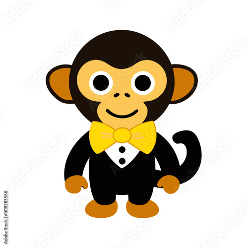 © Cartoon vect, Obraz premium Cartoon Chimpanzee Vector Illustration Wearing a Bow Tie