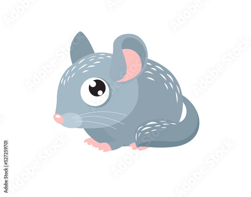 Naklejka premium Cartoon chinchilla. Sweet rodent. Cartoon character.Little fluffy mouse. gray wool