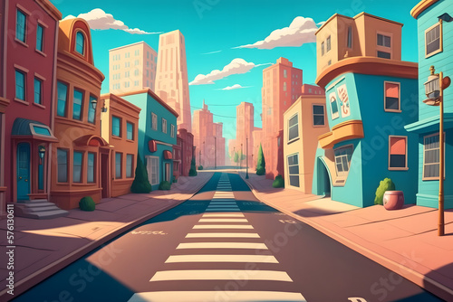 Obraz premium Cartoon city background, town. Made with Generative AI
