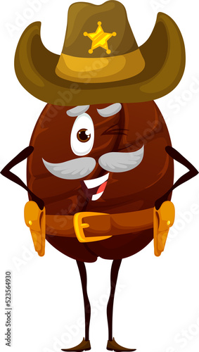 Naklejka premium Cartoon coffee bean ranger or sheriff character