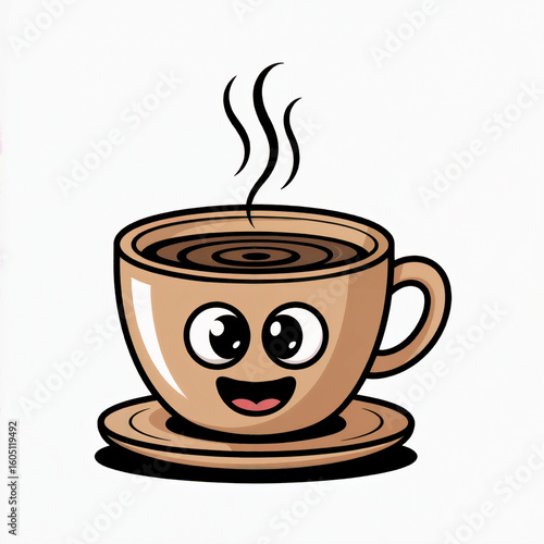 © MDNAUSHAD, Obraz premium Cartoon coffee cup with smiling face and steam happy