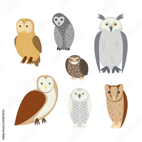 © bigmouse108, Fototapeta premium Cartoon Color Different Owl Birds Set Concept Flat Design Style. Vector illustration of Sitting Nocturnal Owls