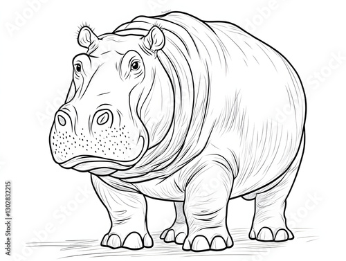 Fototapeta premium Cartoon Coloring Page of a hippopotamus, on white background.