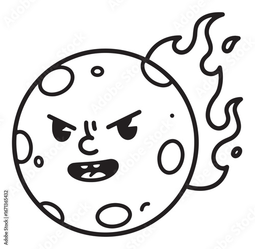 © Modina Khatun, Fototapeta premium Cartoon comet with angry face on fire vector illustration on white background