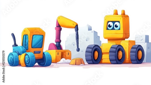 Fototapeta premium Cartoon Construction Vehicles with Bright Colors and Friendly Faces