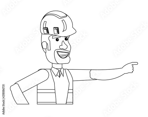 Obraz premium cartoon construction worker with safety vest and helmet over white...