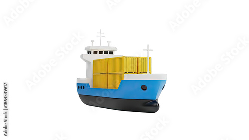 © Kshgas, Obraz premium Cartoon Container Ship with Yellow Cargo