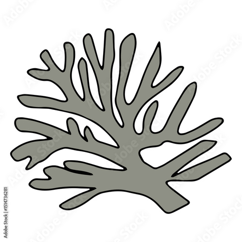 © Griyolabs, Obraz premium cartoon coral reef isolated on white background. Abstract Seaweed Shape Aesthetic Element Vector Illustration