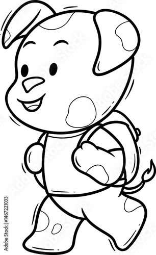 © mchlabs, Naklejka premium Cartoon Cow with Backpack Outline