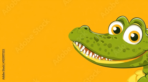 Obraz premium Cartoon crocodile face with big eyes and teeth on a yellow background.