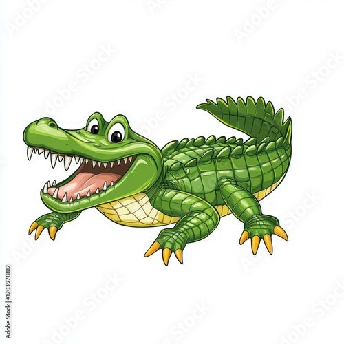 Fototapeta premium Cartoon crocodile, happy, smiling, isolated, children's book illustration, possible use in kids' media