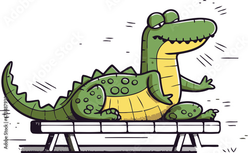 Fototapeta premium Cartoon crocodile sitting on a bench. Vector illustration for your design