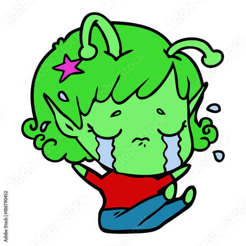 Obraz premium cartoon crying alien girl