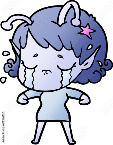 Obraz premium cartoon crying alien girl